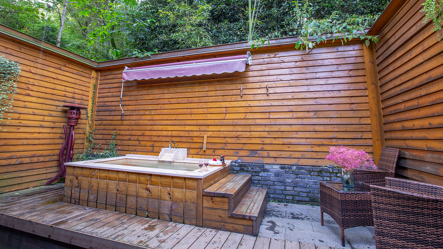 天目湖御水温泉的户外加料泡池内添加的材料或取名贵之材,或取稀有之品,浸泡其中,不仅可以放松自我,还有养生保健之功效。